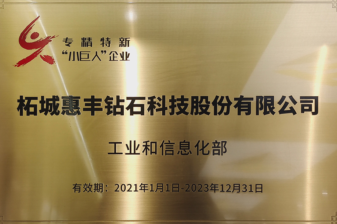 2020年12月被國家工信部評為“專精特新”重點小巨人企業;2021年11月被國家工信部認定為“人造單晶金剛石微粉”制造業單項冠軍;2019年公司被河南省工信廳認定為“河南省智能工廠”